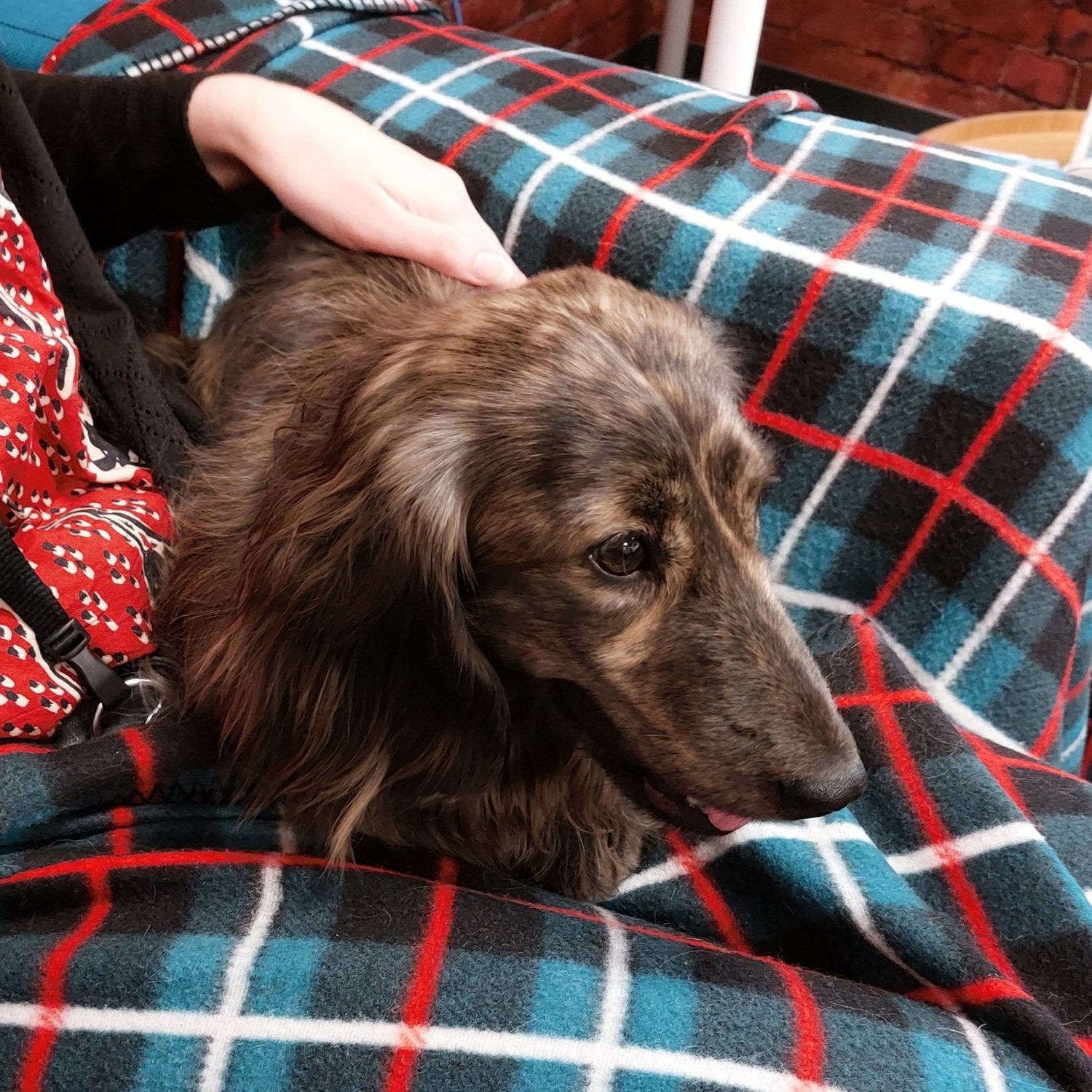 This month our Mental Health First Aiders organised our second doggy de-stress day where we were visited by 3 very friendly dogs who live at local kennels. Our visitors were Africa - a retired service Labrador, Frankie - a long-haired rescue Dachshund and Badger - a Dachshund bred at the kennels, who all loved getting to meet our team.